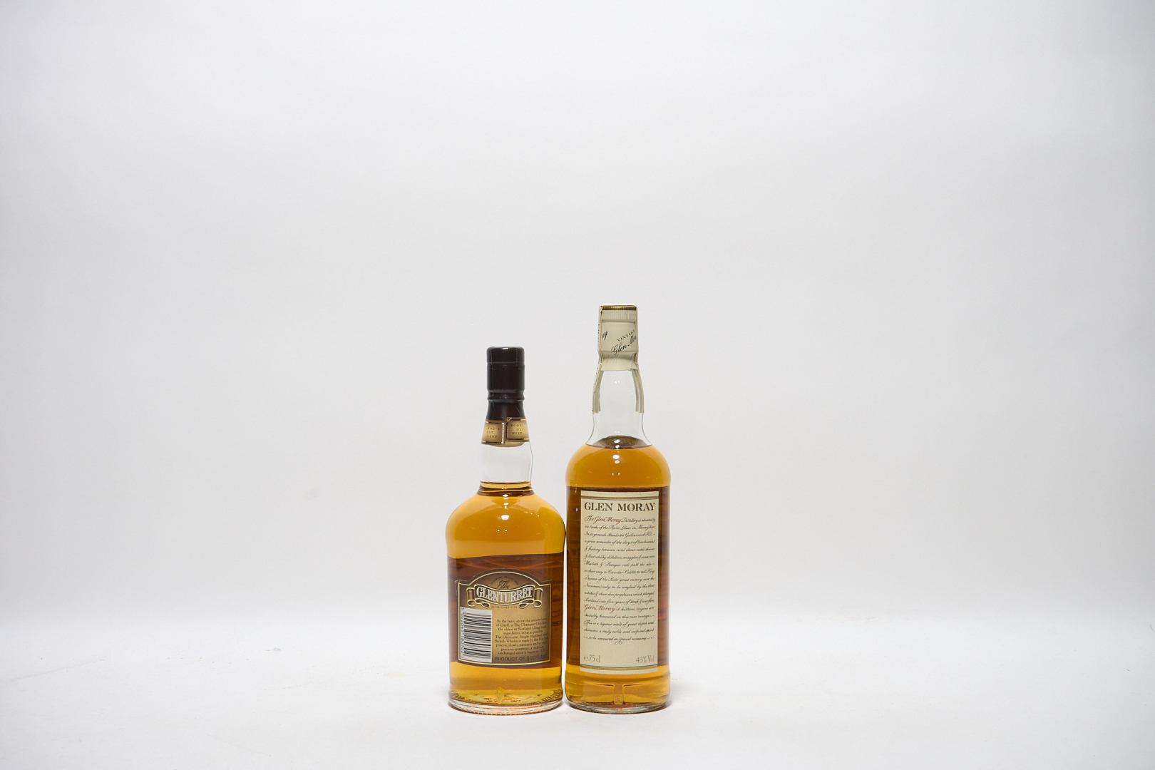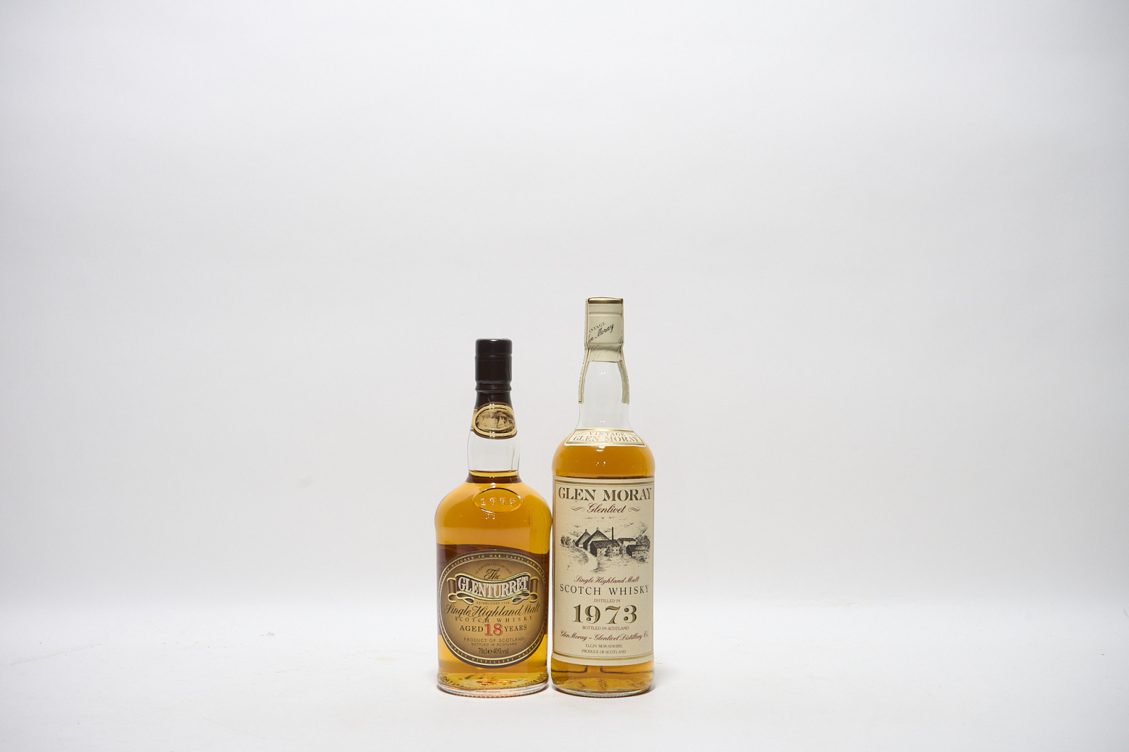 Errata corrige: The lot is composed of a bottle of Glen Moray and one of Glenturret, the correct estimate is 300-500 euros and the starting price is 225 euros, differently from what stated in the paper catalogue.
