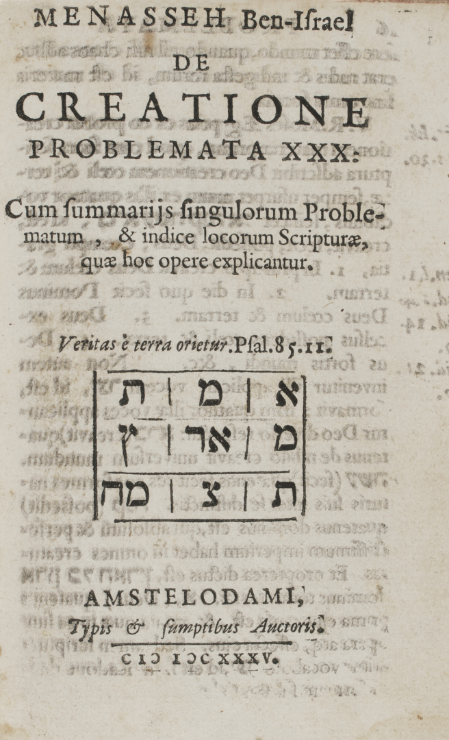 [Judaica]. Menasseh ben Israel. De Creatione Problemata XXX. Amsterdam, a spese dell'autore, 1635.