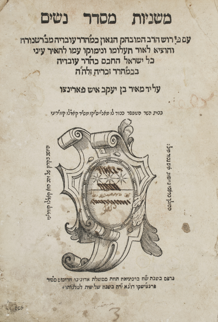 Sequenze 3-6 di questa prima edizione con i commenti del rabbino italiano Obadiah di Bertinoro. La Mishnah è la prima importante redazione scritta delle tradizioni orali ebraiche note come "Torah orale". La maggior parte della Mishnah è scritta in ebraico mishnaico, mentre alcune parti sono in aramaico.