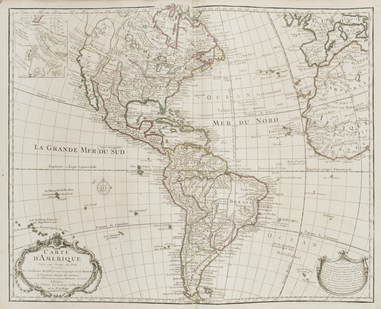 [Delisle e Dezauche]. Atlante (518 x 367 mm) che contiene 23 carte geografiche a doppia pagina con coloritura dei confini; Mappamonde di Delisle del 1720, Carte d'Europe di Delisle, Buache e Dezauche del 1780, Carte d'Asie di Delisle e Buache del 1762, Carte d'Afrique di Delisle e Buache del 1765, Carte d'Amerique di Delisle e Buche del 1763, Carte de France di Delisle e Buache del 1764, Carte de Suisse di Delisle e Buache del 1759, Carte du Piemont et du Monferrat di Delisle e Buache del 1745, Partie meridionale du Piemont di Delisle e Buache del 1745, L'Italie di Delisle e Buache del 1745, Carte de la Hongrie di Delisle e Buache del 1745, Carte de l'Espagne di Delisle e Buache del 1765, Carte de la Turquie di Delisle e Buache del 1780, Carte des provinces unies des Pays Bas di Delisle e Buache del 1745, Carte des Pays Bas Catholiques di Delisle e Buache del 1745, L'Allemagne di Delisle e Buache del 1745, La Pologne di Delisle e Buache del 1745, Carte de Moscovie in due parti di Delisle e Buache del 1746, Carte du Royaume de Danemarc di Delisle e Buache del 1759, Carte des couronnes du Nord in due parti di Delisle e Buache del 1745, Les isles britanniques di Delisle e Buache del 1745 (difetti e restauri.) Lotto non passibile di restituzione.