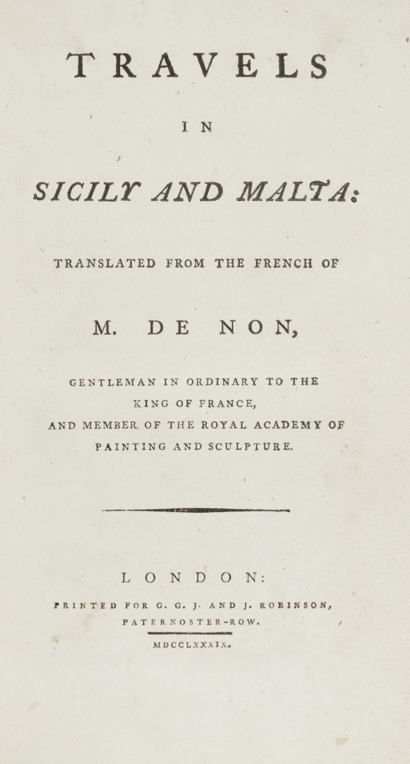 Denon, Dominique Vivant. Travels in Sicily and Malta. Londra, Robinson, 1789.