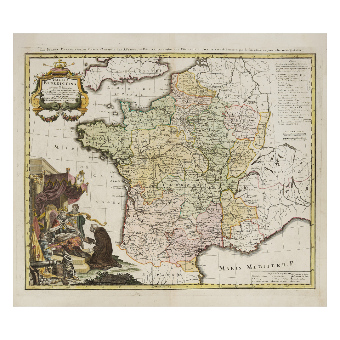 [Francia]. Homann, Johann Baptist. Gallia Benedictina. Norimberga, Eredi Homann, 1738.