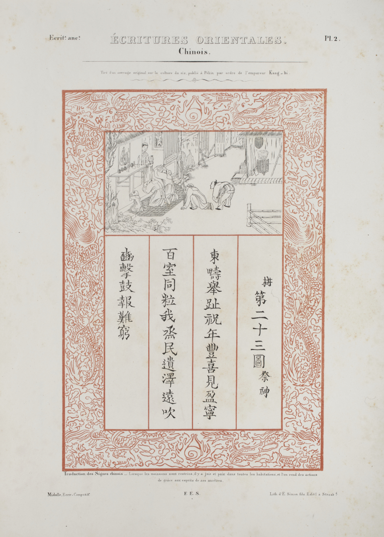 Prima edizione. Contiene vari alfabeti in numerose scritture decorative e di fantasia del calligrafo e grafico francese Jean Midolle (1773 - circa 1845). Le singole sezioni hanno i propri titoli litografati: Ecritures anciennes, Specimen des ecritures modernes, Galerie composition.