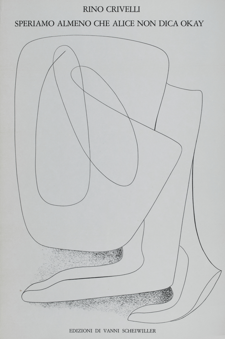 [Libro d'artista]. Esemplare in parte a fogli chiusi del volume Speriamo almeno che Alice non dica okay di Rino Crivelli, stampato nel 1978 all'Insegna del Pesce d'Oro, con 150 disegni e 15 storie, entro legatura editoriale in cartonato a stampa, entro astuccio editoriale.