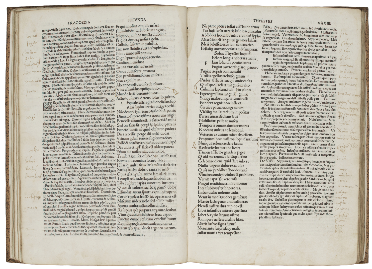 Esemplare completamente postillato di questa quinta edizione separata che segue la princeps del 1478 delle Tragedie di Seneca.