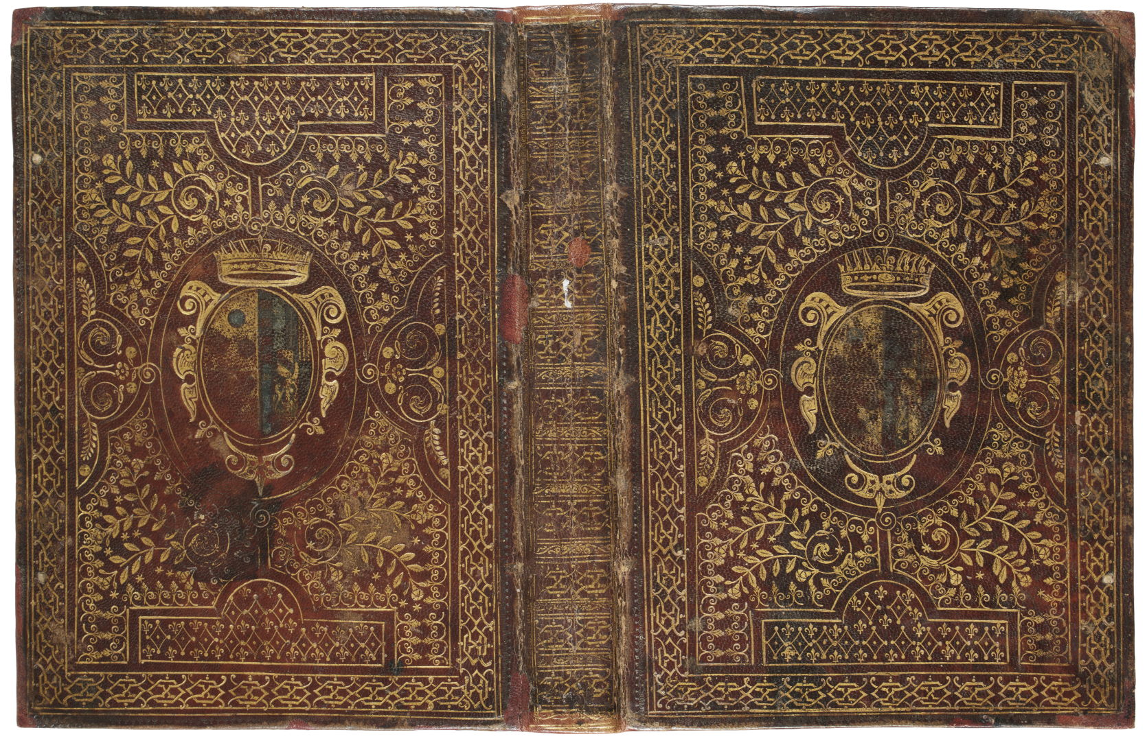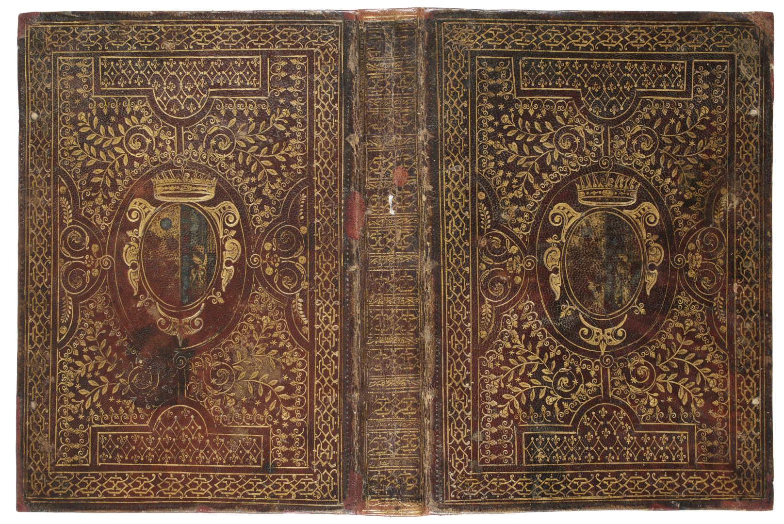 [Legatura]. Esemplare di dedica di Cristina di Lorena (1565-1637) in legatura coeva in marocchino alle armi della granduchessa, che contiene La Cristiade poema heroico del signor Marcantomio Laparelli del 1618 dedicato "alla serenissima gran duchessa di Toscana madre Madama Cristiana di Lorena" con frontespizio allegorico inciso e stemma di Cristina di Lorena in alto (manca la carta Ee4). La granduchessa fu la figlia del duca Carlo III di Lorena e moglie del granduca Ferdinando I de' Medici e, in quanto tale, granduchessa consorte di Toscana.