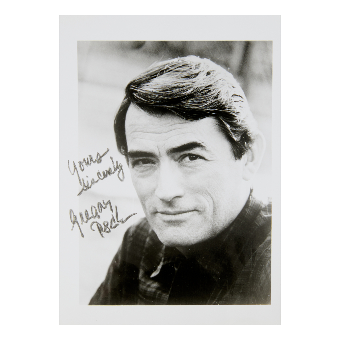 Peck, Gregory. Dedica “Yours sincerely” e firma autografa dell’attore californiano su fotografia in bianco e nero (175 x 130 mm).