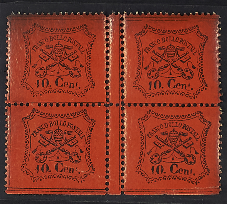 2 C. VERDE GIALLO CON INTERSPAZIO DI GRUPPO A DESTRA + 10 C. VERMIGLIO ARANCIO BLOCCO DI QUATTRO VON INTERSPAZIO DI GRUPPO VERTICALE