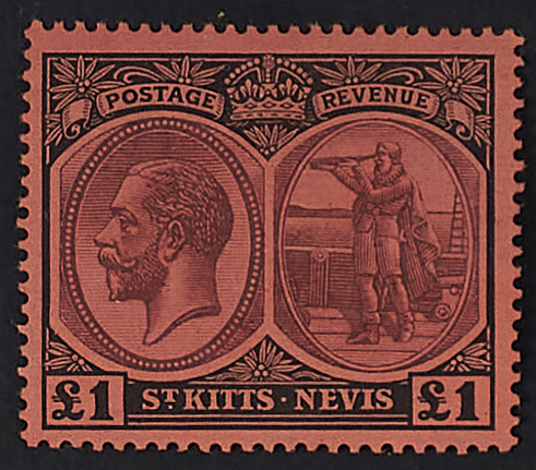 GIORGIO V 1 £. VIOLETTO E NERO SU CARTA ROSSA