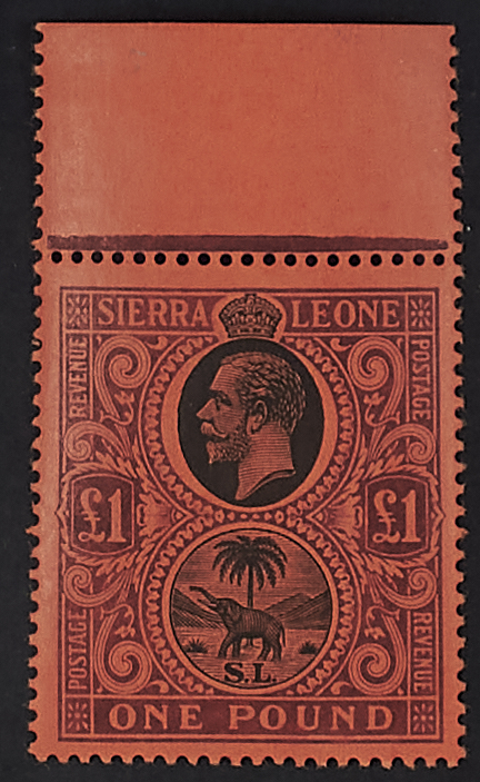 1912 - Giorgio V 1 £. violetto e nero su carta rossa bordo di foglio superiore