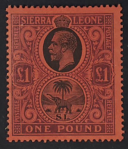 GIORGIO V 1 £. VIOLETTO E NERO SU CARTA ROSSA