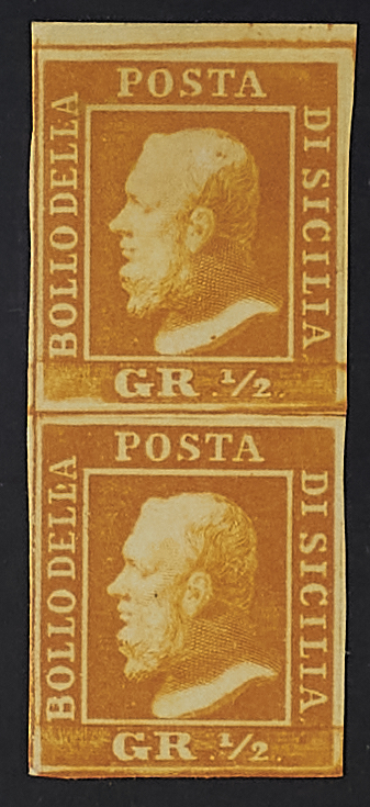 1859 - 1/2 gr. I tavola arancio coppia verticale - Firma En. D.