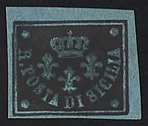 1858 - Saggio Barone in nero su carta azzurra - Cert. Bottacchi
