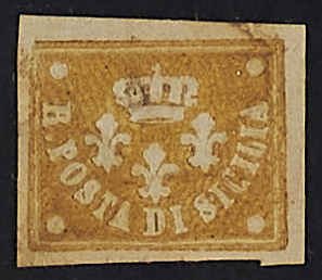 1858 - Saggio Barone in giallo su carta gialla - Da esaminare - Cert. Raybaudi