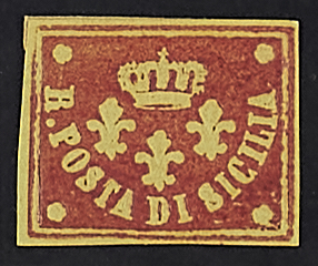 1858 - Saggio Barone in arancio su carta gialla - Cert. Zanaria