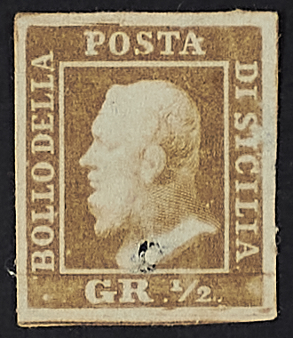 1858 - La Barbera e Lao - Prova di colore 1/2 gr. I tavola bistro oliva chiaro su carta a macchina - Da esaminare - Cert. Diena