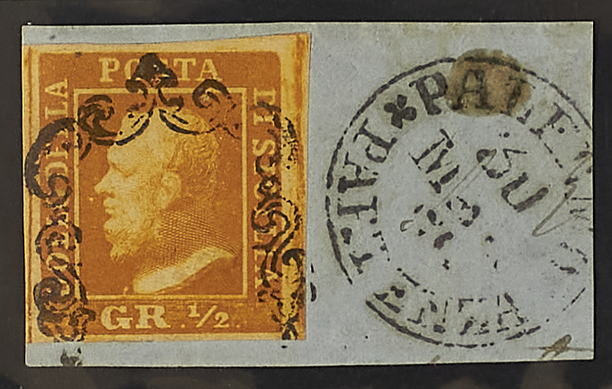 1/2 GR. I TAVOLA ARANCIO SCURO CARTA DI NAPOLI SU PICCOLO FRAMMENTO