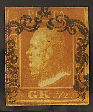 1859 - 1/2 gr. II tavola arancio scuro - Cert. Sorani