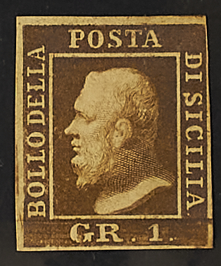 1859 - 1 gr. I tavola I stato bruno ruggine intenso - Estremamente raro - Cert. Sorani