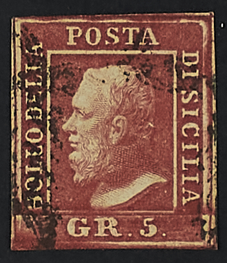 1859 - 5 gr. I tavola rosa carminio + 5 gr. I tavola carminio - Cert. Bottacchi - Firme E.D., A.D. e Caffaz