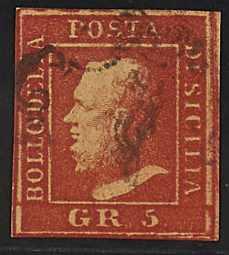 1859 - 5 gr. I tavola vermiglio due esemplari - Firma A.D.