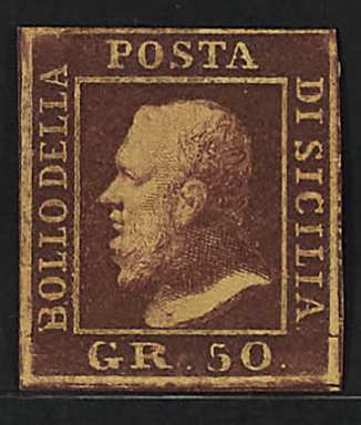 1859 - 50 gr. lacca bruno pos. 67 "ritocco" - Firma Cardillo