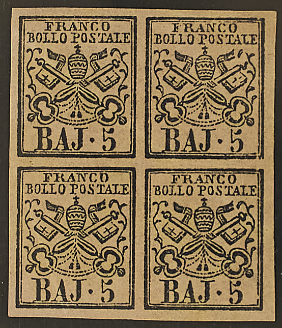 1852 - 5 baj. rosa blocco di quattro - Firma Fiecchi