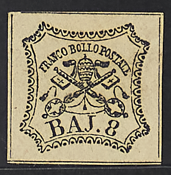 1852 - 8 baj. bianco tre esemplari - Da esaminare