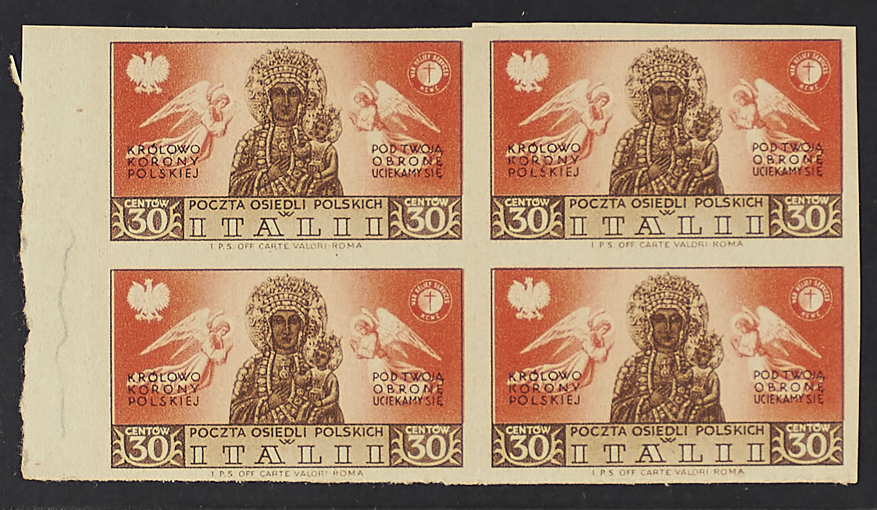 1946 - Soccorso di guerra - Colori diversi - I due valori non dentellati da 30 c. e 60 c. in blocchi di quattro bordo di foglio a sinistra - Molto rari