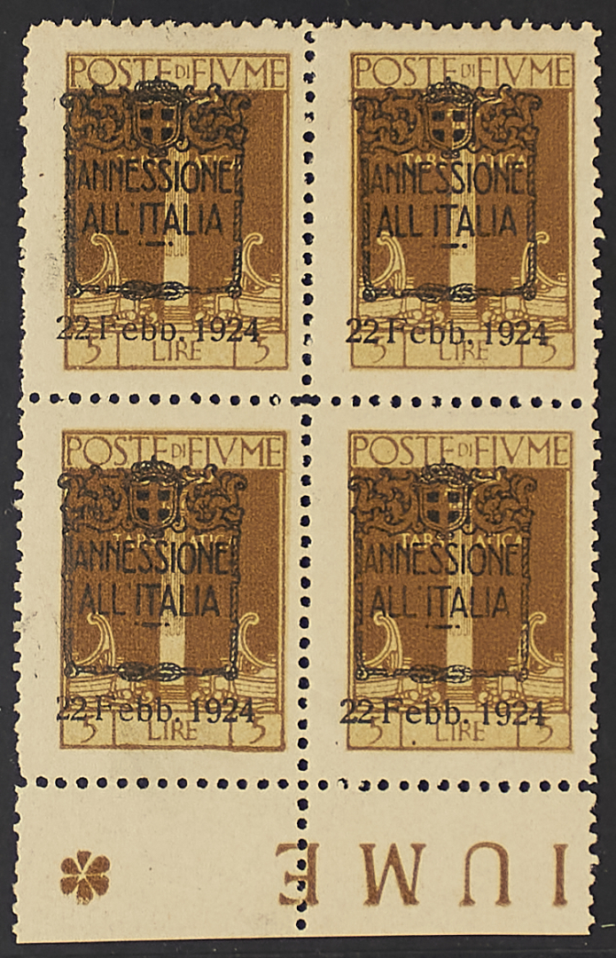 1924 - Annessione all'Italia - Dieci serie - 1 L. presente in nove esemplari