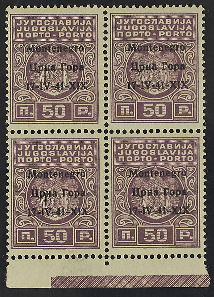 1941 - Segnatasse 50 p. violetto lilla blocco di quattro - Cert. Petric