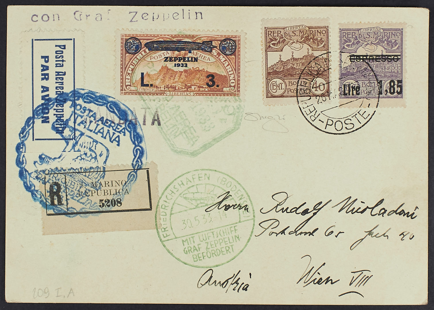 1931/2000 - Voli Zeppelin - Collezione di oltre 100 documenti postali del periodo comprendente numerosi aerogrammi con affrancature di vari paesi anche non comuni e un certo numero di buste commemorative - Interessante insieme per specialista - Alcuni certificati
