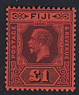 1914 - Giorgio V 1 £. violetto e nero su carta rossa due esemplari
