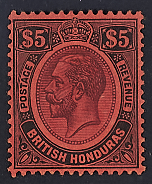 GIORGIO V 5$ VIOLETTO E NERO SU CARTA ROSSA II EMISSIONE