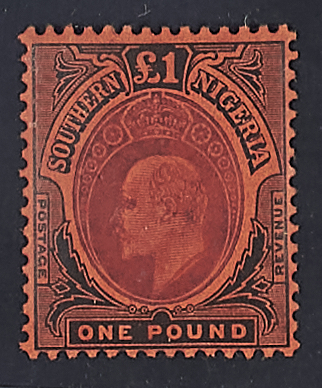 1909 - Edoardo VII 1 £. violetto e nero su carta rossa