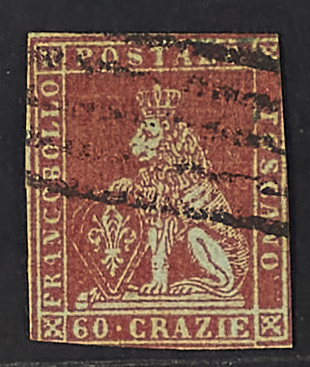 1852 - 60 cr. scarlatto cupo su carta grigia - Raro - Da esaminare - Cert. Diena