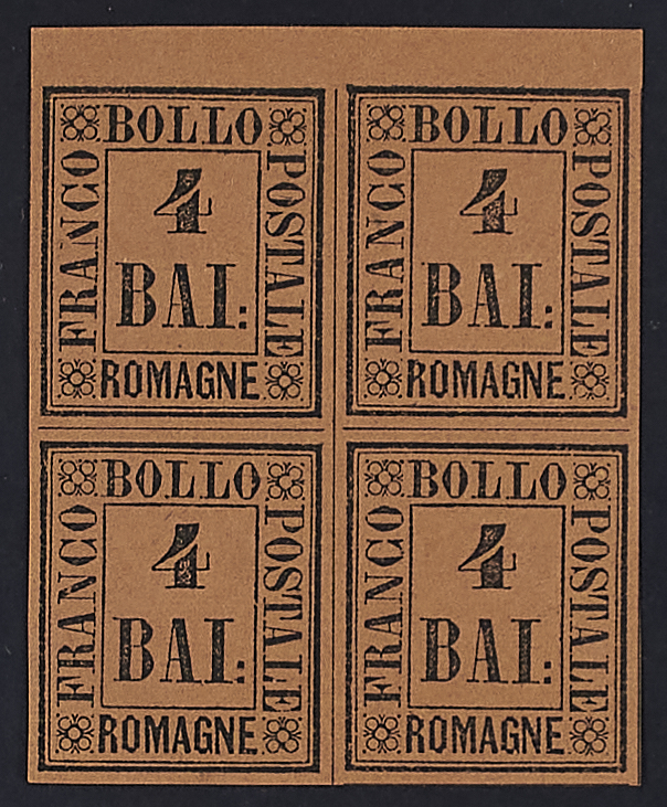 1859 - L'emissione fino all'8 baj. in blocchi di quattro bordo di foglio superiore