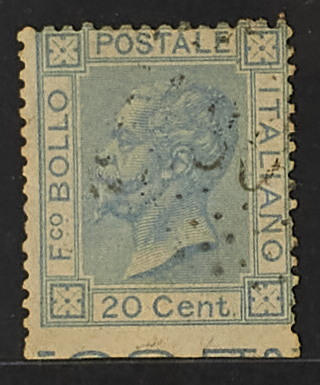 1867 - Nuovo formato 20 c. azzurro non dentellato in basso - Da esaminare - Firme A.D. e Fiecchi