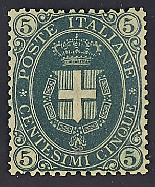 1889 - Umberto II emissione 5 c. verde scuro - Ottima centratura - Cert. Bolaffi - Firma Raybaudi