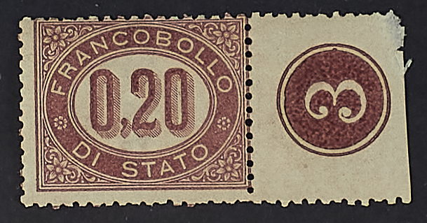 1875 - 0,20 c. lacca bordo di foglio a destra con numero di tavola "3" - Firma En. D.