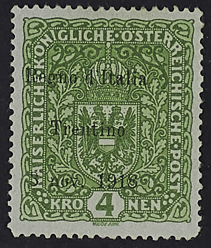 1918 - Emissione per il Trentino - La serie fino al 4 C. - Cert. Avi - Firma Oliva