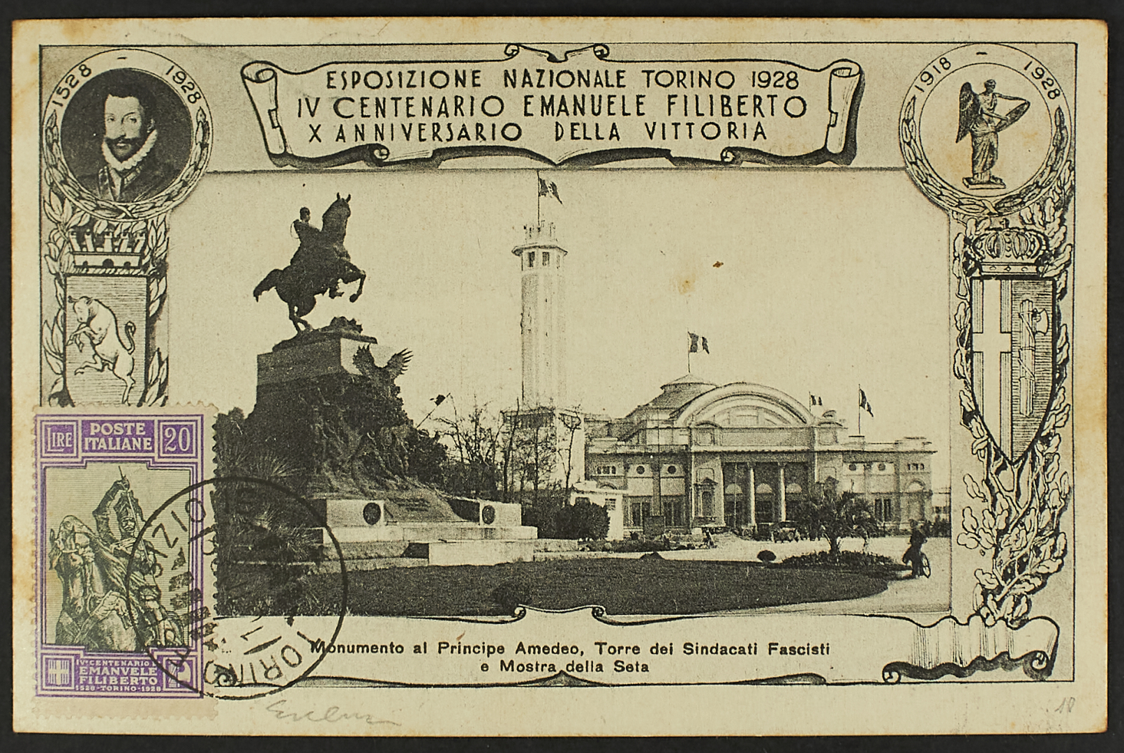 1928 - Emanuele Filiberto - Dieci cartoline con alcuni valori della serie tra cui l'alto valore da 20 L. - Non comuni - Da esaminare