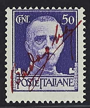1943 - Badoglio 50 c. non emesso - Cert. Caffaz e Raybaudi