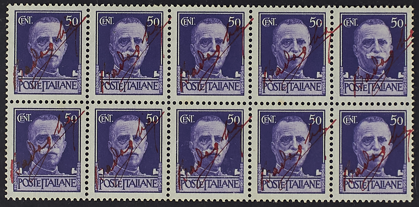 BADOGLIO 50 C. NON EMESSO BLOCCO ORIZZONTALE DI DIECI ESEMPLARI