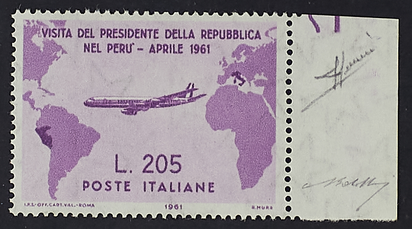 1961 - Gronchi Rosa 205 L. bordo di foglio a destra - Cert. Sorani - Firma A.G. Bolaffi