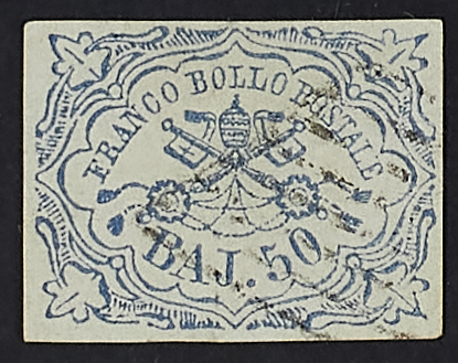 1852 - 50 baj. azzurro - Cert. Diena - Firma G. Bolaffi
