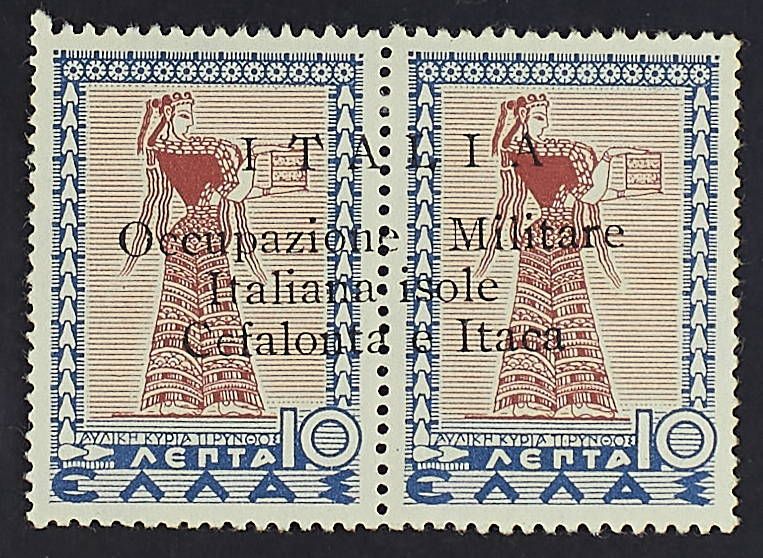 1941 - Miti 10 + 10l. e 20 + 20 l. entrambi con errore "Cefalonta" - Da esaminare - Firma Oliva