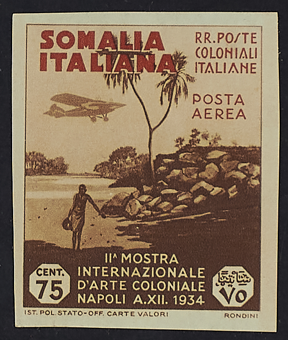 1934 - Arte coloniale 75 c. non dentellato - Raro - Cert. Sorani