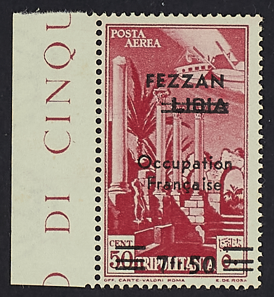 1943 - Prima emissione 50 c. + Seconda emissione 7,50 f. / 50 c. bordo di foglio a sinistra - Cert. Bolaffi - Firma A.D.