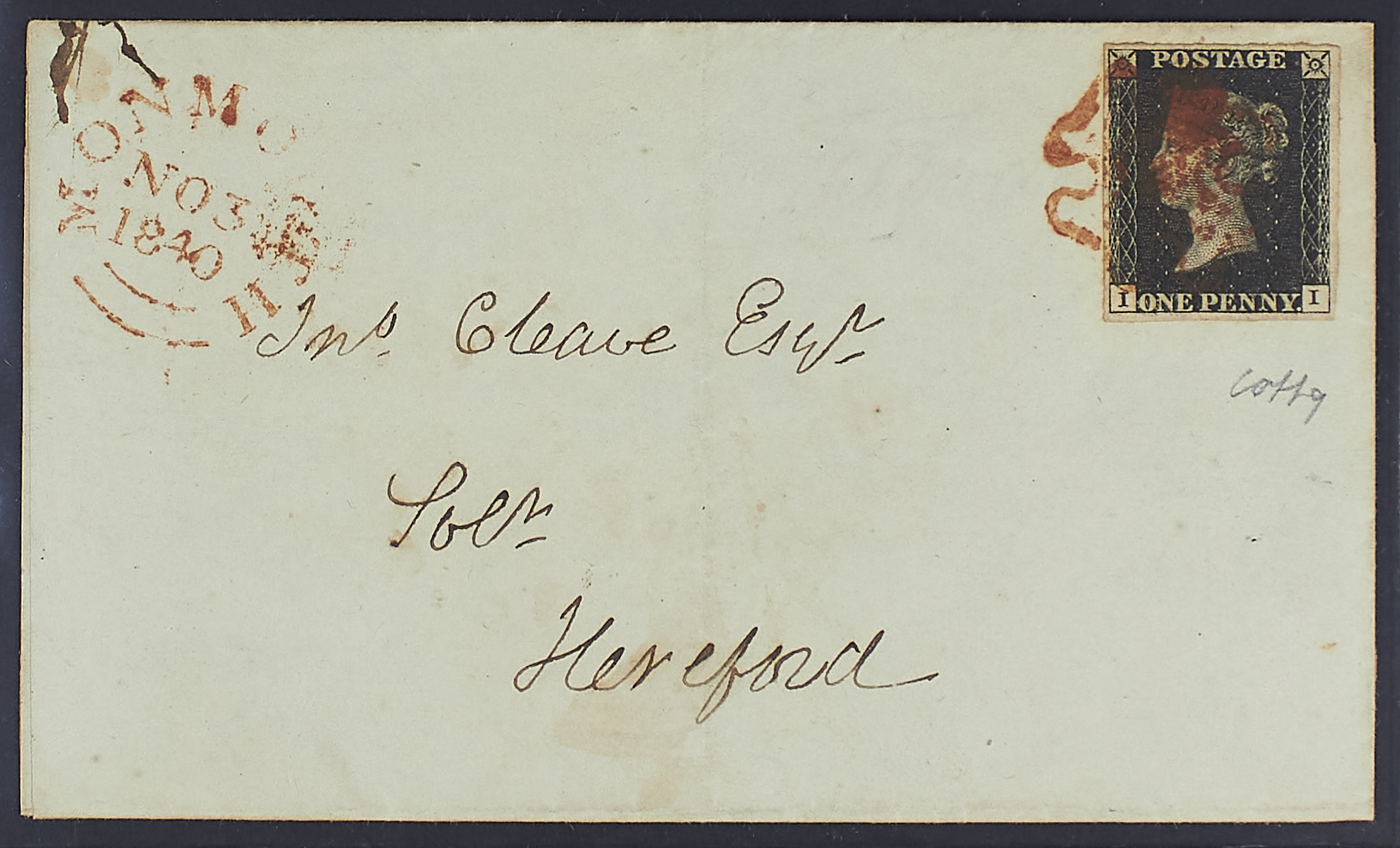 1840 - Prima emissione 1 p. nero su lettera del 3 novembre da Monmouth per Hereford - Firma Colla